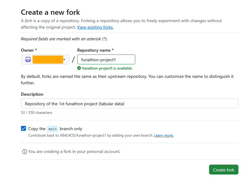 First, you need to fork the funathons’s project on Github by clicking on this link. For convenience, please not to change the repository name. Write down the owner’s name OWNER_NAME for the next step.