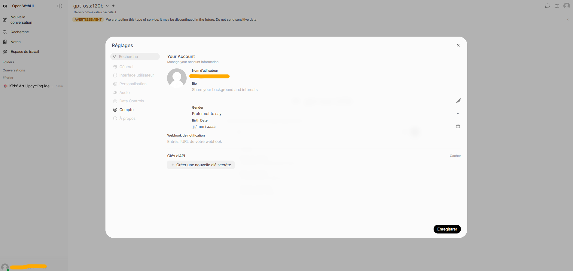 Please verify you are connected to the SSPCloud and then use the following link to reach llm.lab UI : https://llm.lab.sspcloud.fr/. Now, go to your account settings (upper right - “Réglages”) / account (“Compte”) / API Keys (“Clés d’API”) => you are now ready to create your api key!