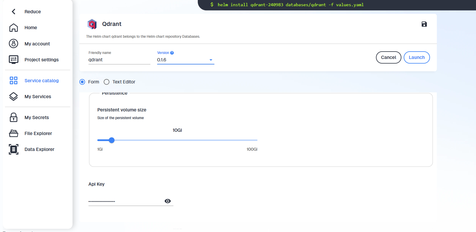 - Create a Qdrant service in your personal namespace as follows